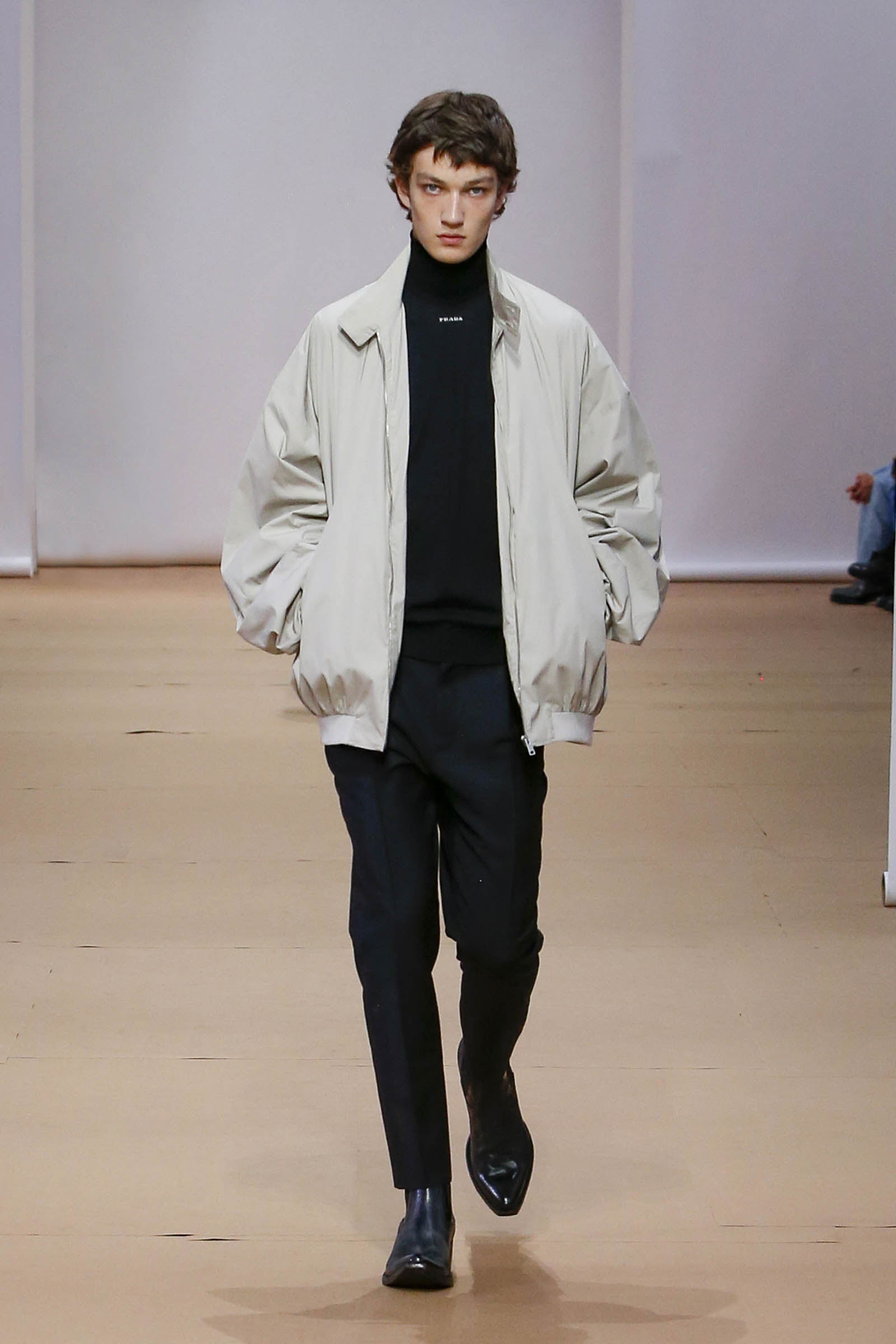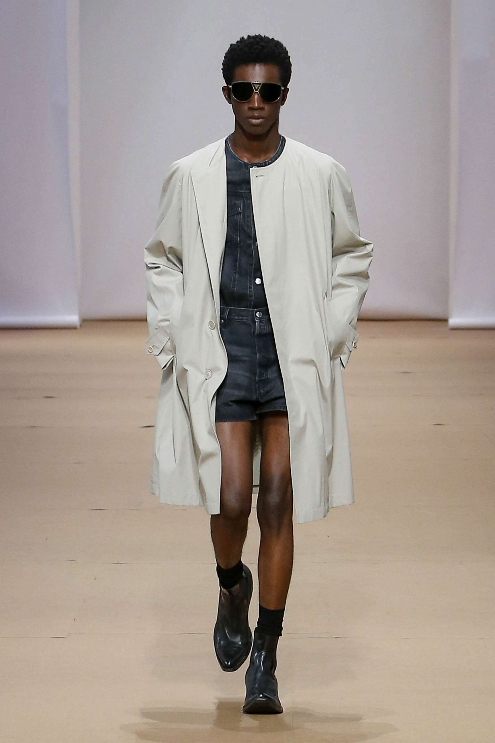 La riduzione si traduce in essenzialità, ogni dettaglio estraneo viene rimosso: i colletti scompaiono dalle camicie e dai cappotti, i pantaloni sono attillati e si interrompono alla caviglia o diventano shorts. La logica conclusione di questo processo di affinamento è una sequenza di abiti neri sartoriali. Rimuovere il superfluo dona un sollievo fisico ed emotivo, una freschezza e una leggerezza nuove.