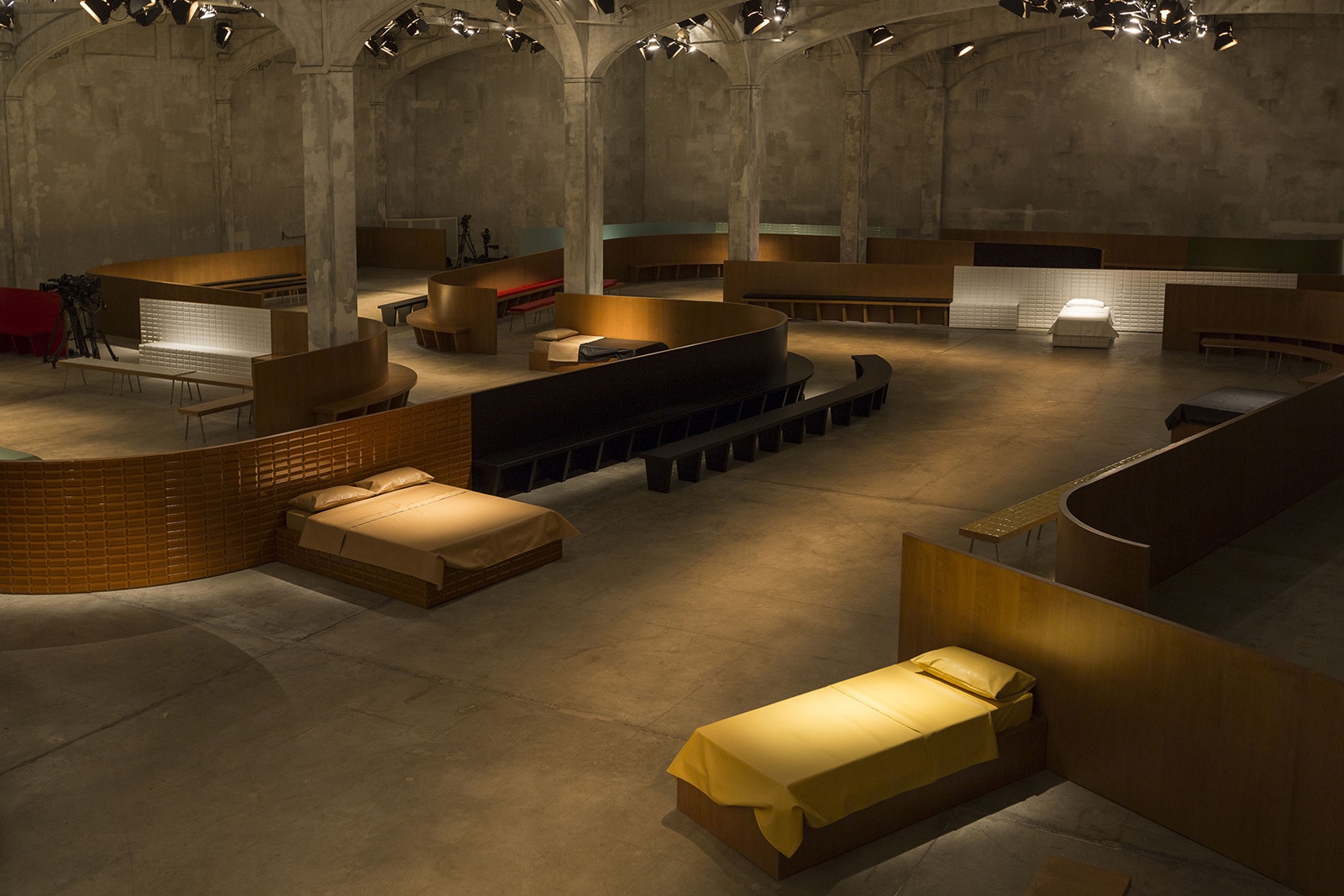 布置细致有序的场景与简单粗糙的舞台形成鲜明对比,大胆的创意表达了自然本真的精髓。