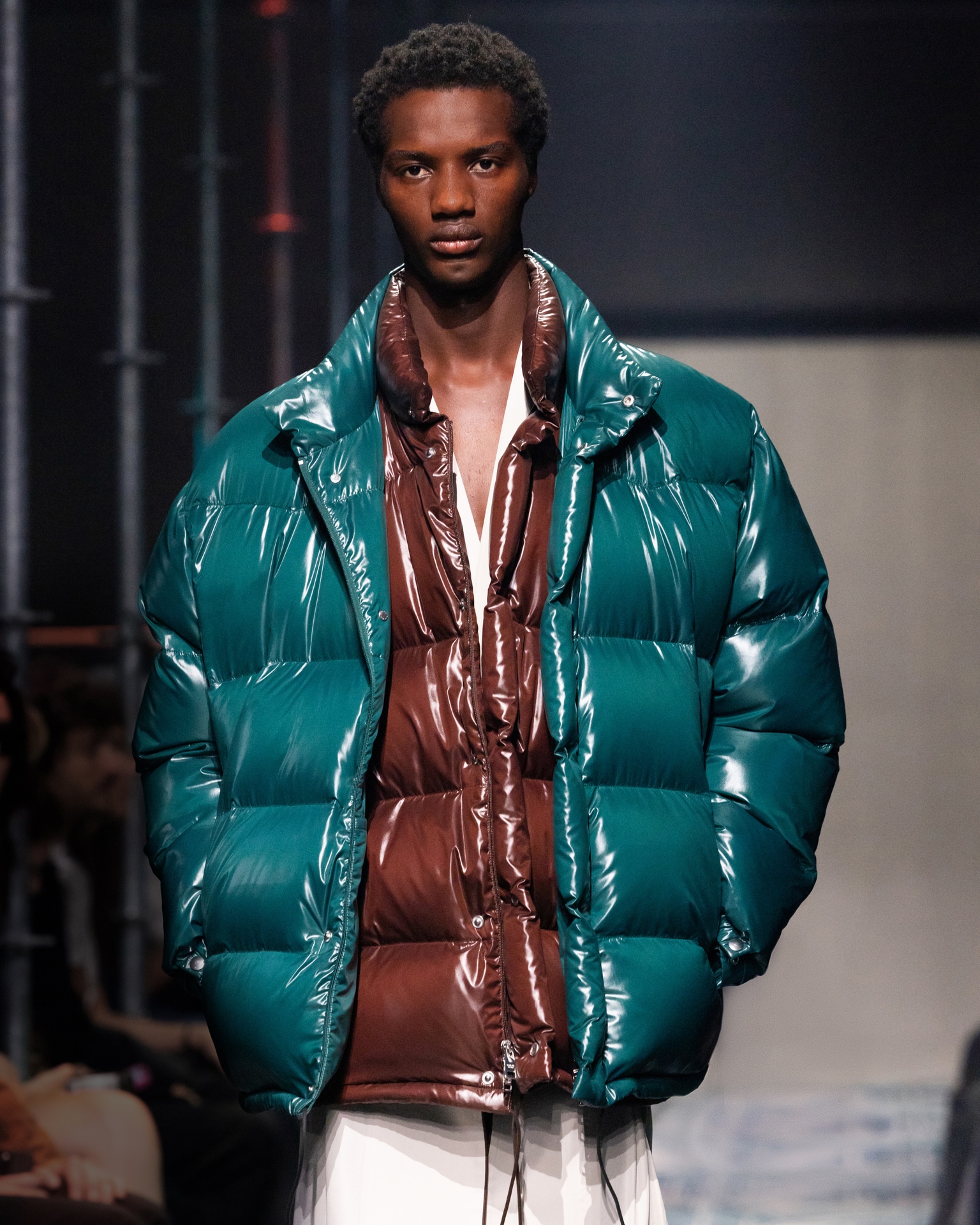An expression of instinct. The Fall/Winter 2025 menswear collection by Miuccia Prada and Raf Simons explores human nature, basic instincts, as a tool for fundamental human creativity. Unlearned reactions, automatic responses. Primitive urges.