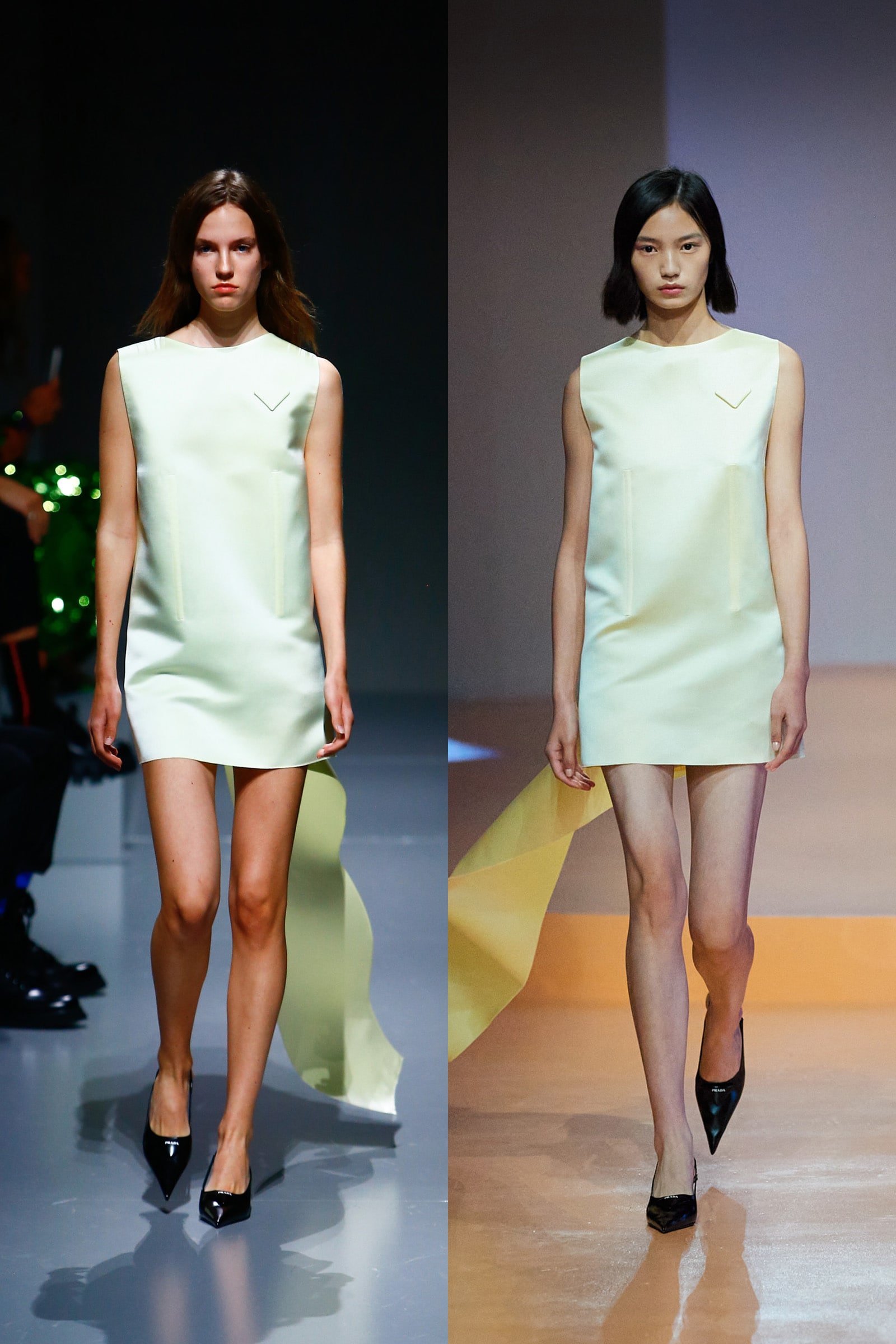 Des vues synchrones et simultanées incarnent le monde moderne : nous observons, nous interagissons et nous communiquons d’une multitude de manières. Le défilé Prada Printemps/Été 2022 est mis en scène, simultanément, au Deposito de la Fondation Prada, à Milan, et au Bund 1, à Shanghai. Dans des décors se faisant écho, des écrans vidéo créent un dialogue entre les deux défilés, un échange entre la réalité physique et virtuelle. Ils réunissent deux groupes de personnes, deux facettes du monde, au sein d’une communauté moderne..