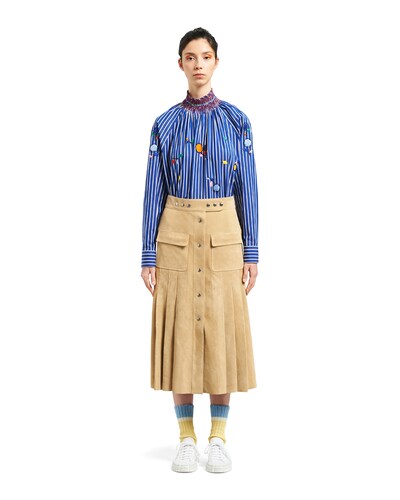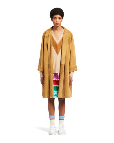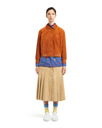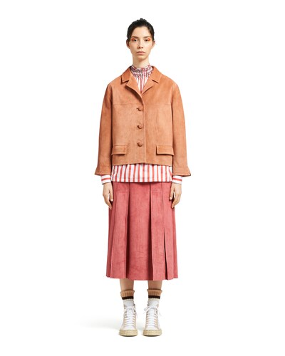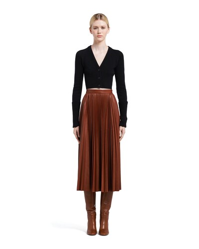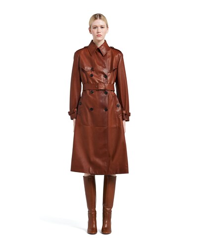 Prada's leather collection for women showcases timeless elegance with a range of jackets, dresses, skirts, and coats. Designed with premium materials, each piece reflects sophistication and durability, offering versatile options that enhance any wardrobe while catering to the modern woman’s sense of style.