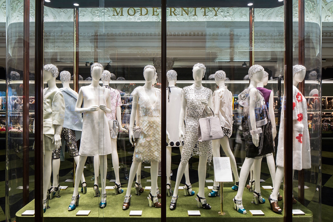 En mayo de 2014, Harrods Knightsbridge, los grandes almacenes más famosos del mundo, acogieron a Prada como invitado honorífico. La celebración, de un mes de duración, incluyó Pradasphere: una exposición que busca el origen de las polivalentes obsesiones de la empresa, desde la moda y los accesorios hasta el arte, la arquitectura, el cine y el deporte, entre otros, con 40 escaparates, una tienda pop-up, múltiples pantallas y una elegante cafetería Marchesi.